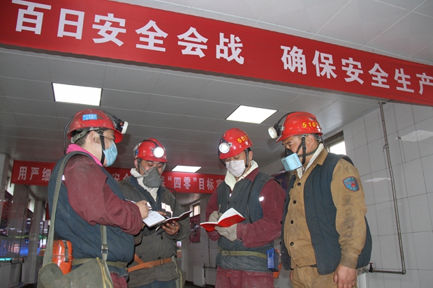 按照“严之又严、细之又细”的原则,找问题、定举措、补短板,依照职能划分,16位副总以上领导、40多名机关科区负责人,人人认领了一片“责任田”,对标“严细实精”、对表“四勤四到”,分工包保、各有侧重、有的放矢,加大防疫日常检查力度,完善“周循环安全检查法”,技术源头细化“日风险隐患告知书”,每天一个井、每天一巡查,了解掌握第一手信息,制定针对性整改举措。一系列有序、有力、有效的井下安全管控,做到了防疫上不放过任何一个潜在可能,安全上不放过任何一个细节漏洞,生产上不放过任何一个薄弱环节。