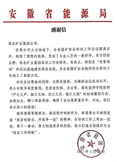 领导高度重视,党委宣传部、办公室、煤电技师学院按照“严之又严、细之又细、实之又实、慎之又慎”的标准履职尽责、加班加点,精心准备现场,确保了会议高质量召开。对此,省能源局专门发来感谢信,全文如下: