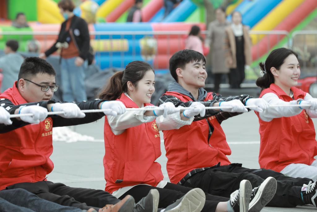 红色拓展心向党。200名团员青年肩并肩面向圆心,每人握住绳子的一部分,一起向后拉,按照教练发出的节奏同时起伏和摆动,形成圆满而富有张力的同心圆。“大到国家,小到企业,只要团结一心,有着强大的凝聚力和执行力,就没有克服不了的困难,就能无往而不胜。”祁南矿团委副书记王畅说。