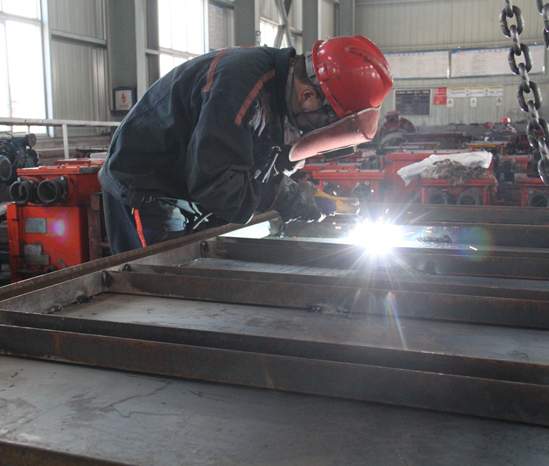 检修工在“精雕细刻”的加工单轨吊集装箱
