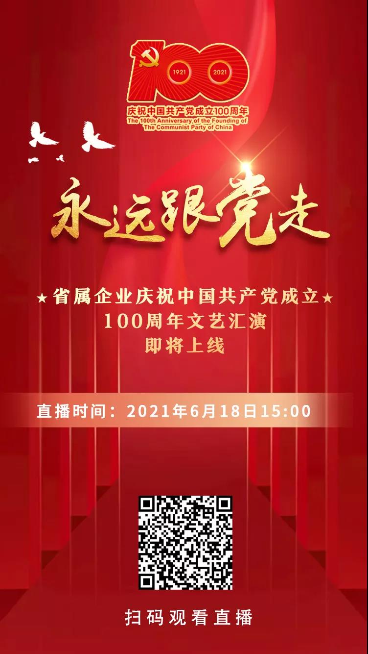 为了歌颂党及建党以来取得的辉煌成就,展现省属企业永远跟党走、投身祖国建设、民族复兴的良好精神风貌,省国资委党委决定举办省属企业庆祝建党100周年文艺汇演。文艺汇演将于2021年6月18日15:00现场直播,敬请期待!快扫描下方二维码进入直播间吧↓