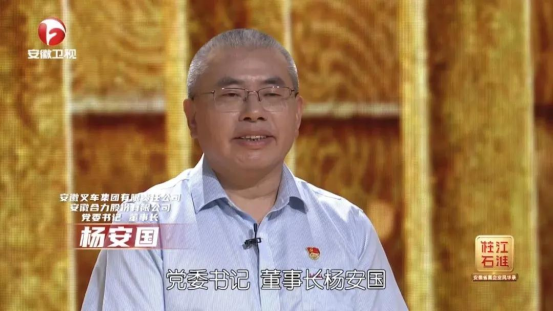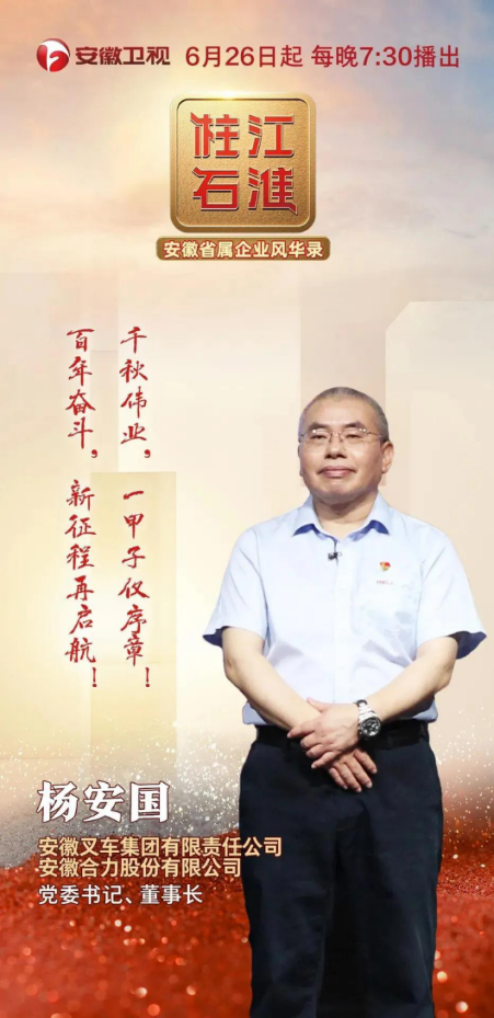 百年激荡,江淮柱石。大家好,我是安徽叉车集团有限责任公司(安徽合力股份有限公司)党委书记、董事长杨安国。