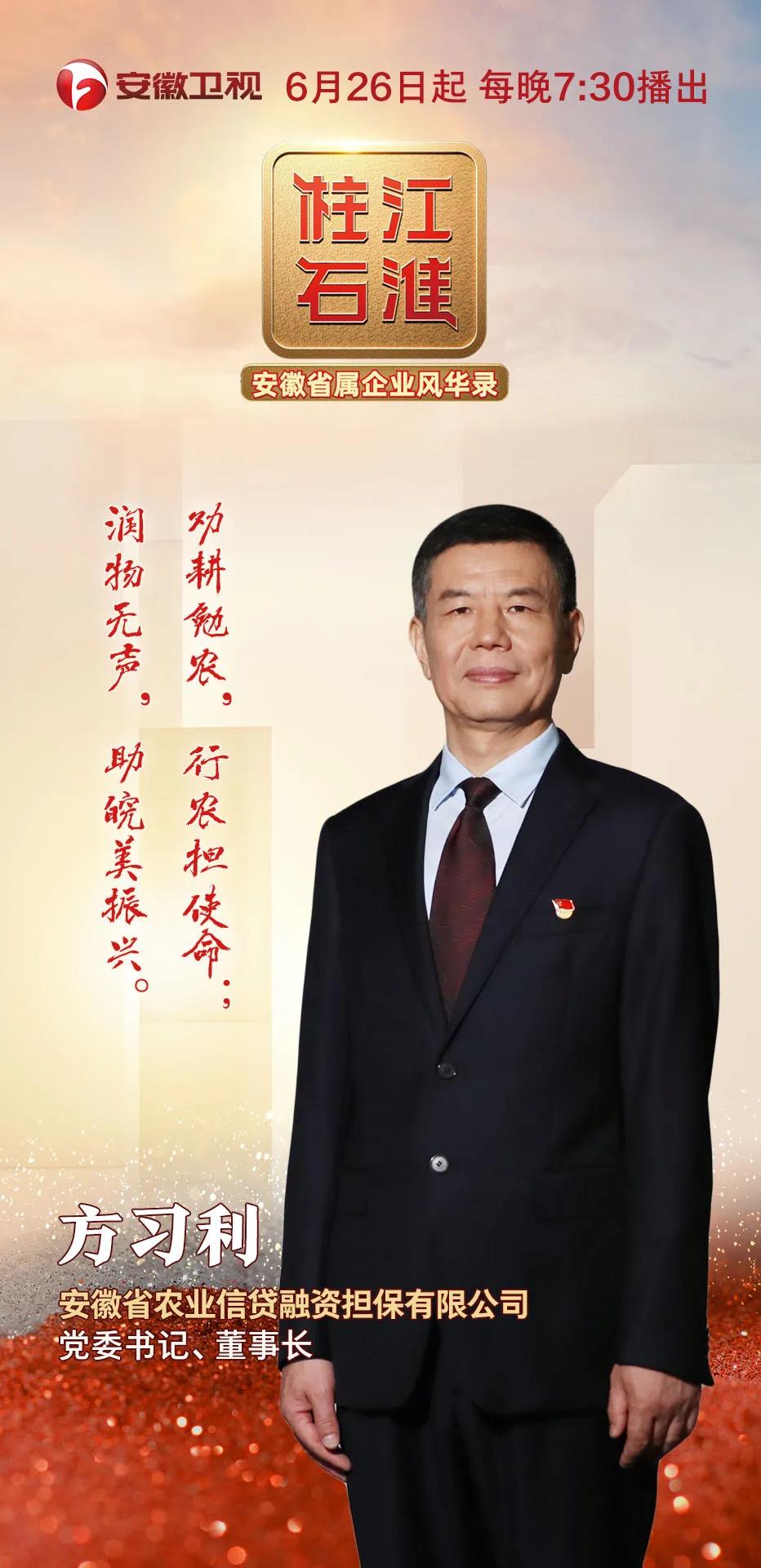 百年激荡,江淮柱石。大家好!我是安徽省农业信贷融资担保有限公司党委书记、董事长方习利。