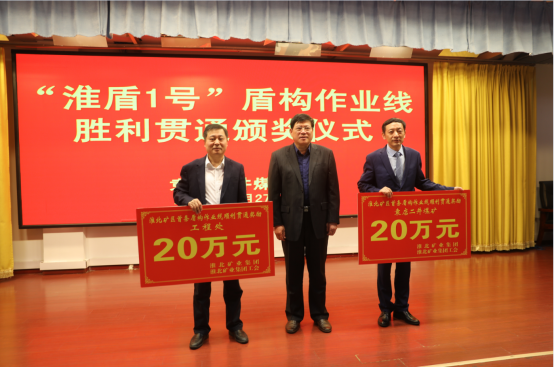 向在“淮盾1号”盾构作业线胜利贯通中作出突出贡献的袁店二矿、工程处等施工单位送去贺信和20万元奖励。