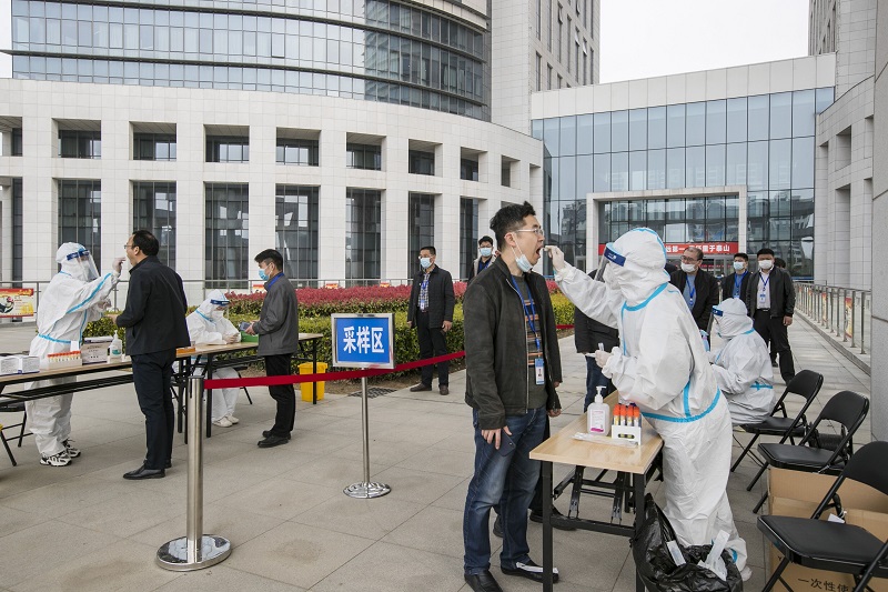 第二轮驻办公中心人员全员核酸检测现场的一幕。