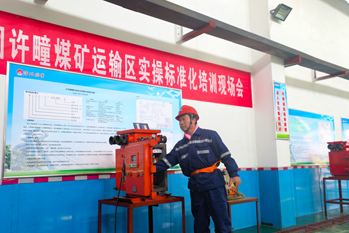 4月8日,许疃煤矿运输区实操标准化培训现场会(周振龙 摄)