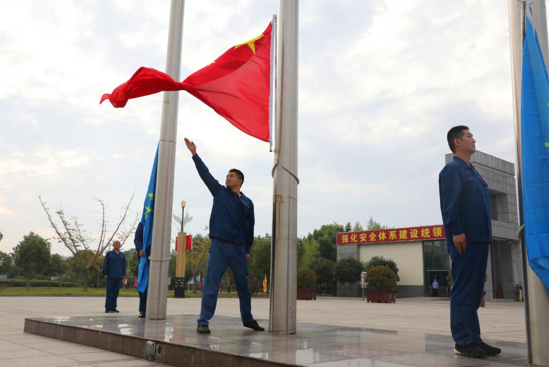 秋风展国旗,晨曦迎华诞。淮北选煤厂举行庄严的升旗仪式,热烈庆祝中华人民共和国成立73周年。由基层职工组成的护旗队,迎着朝阳,迈着整齐、铿锵的步伐来到升旗台前,在雄壮的国歌声中,将五星红旗冉冉升起。