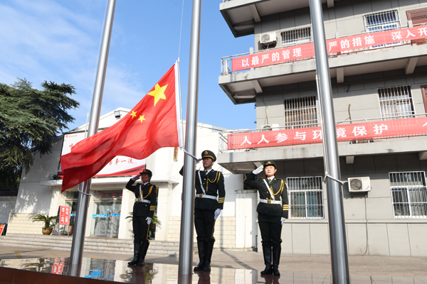 雄壮嘹亮的《中华人民共和国国歌》和《淮北矿业之歌》在青东煤业公司上空响起。干部职工精神抖擞,整体列队,庄严肃穆地面向鲜艳的五星红旗和淮北矿业旗帜行注目礼,伴随着激昂的旋律,共同祝愿伟大祖国繁荣昌盛,青东煤业的明天更加辉煌!(撰稿:李亮 孙婷婷 审核:李文博)