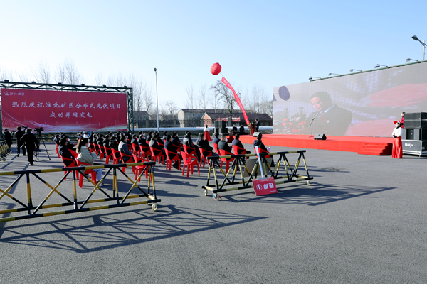 党委常委、淮北矿业总经理葛春贵宣布淮北矿区分布式光伏项目成功并网发电,并和集团相关部门负责人,承建单位代表中能建江苏电建三公司、中冶武勘研究院相关人员一起,启动并网发电“金手掌”。