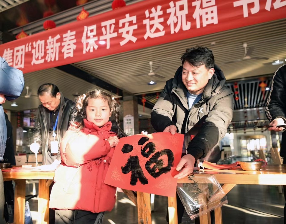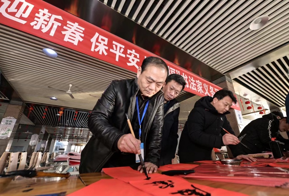 “迎新春、保平安、送祝福”书法家义务写春联活动深入百里矿区,为职工群众送春联送祝福,表达辞旧迎新、接福纳祥的美好愿望。