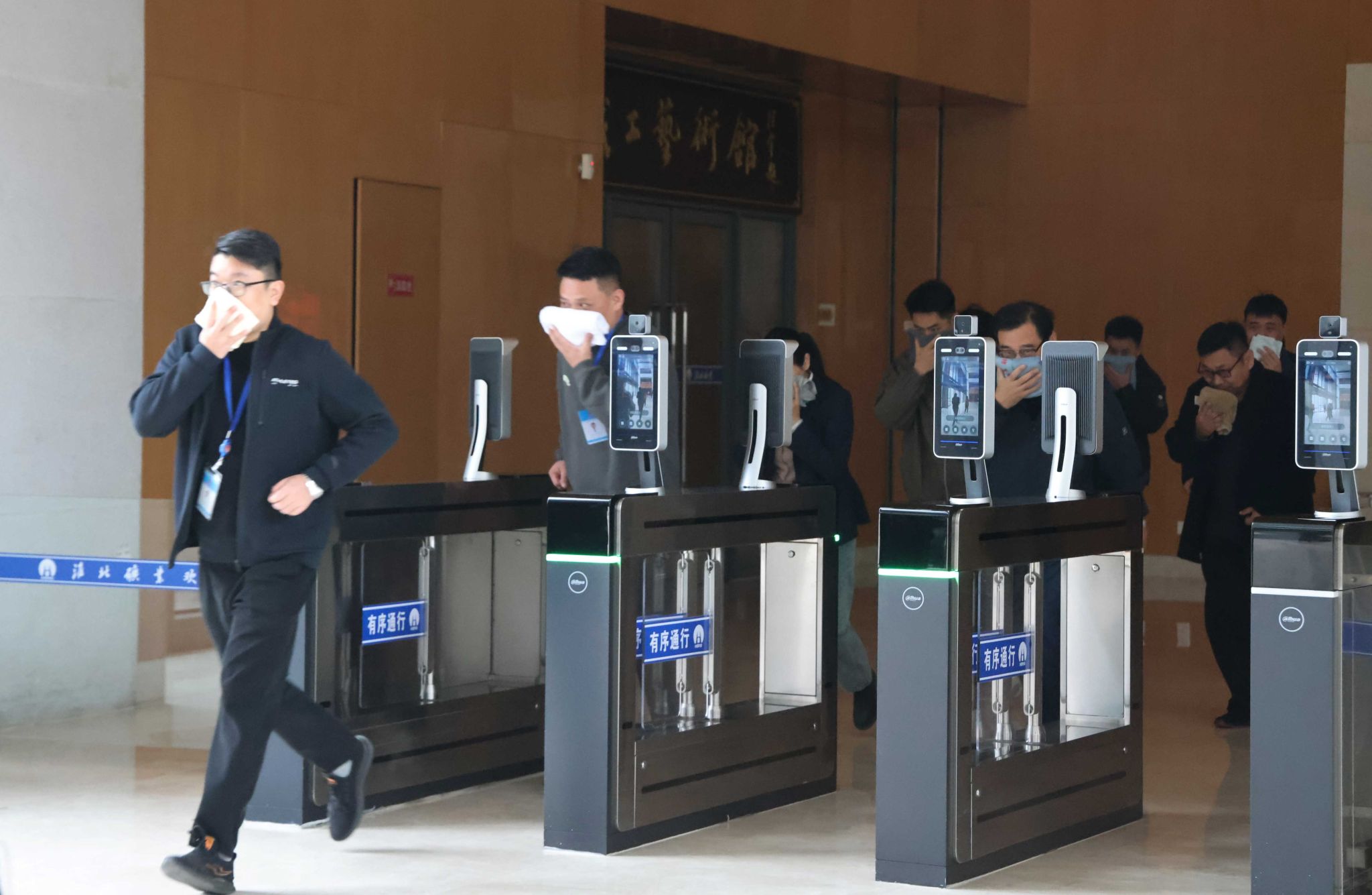 上午8时52分,演习正式开始。模拟火情设定在西塔10层,集控中心发现警报后,迅速启动火灾应急处置预案,同步上报值班领导、调派灭火组前往扑救,并模拟拨打119报警。随即,楼内应急广播系统启动,播报火情信息,并下达全体人员通过步梯紧急疏散撤离的指令。