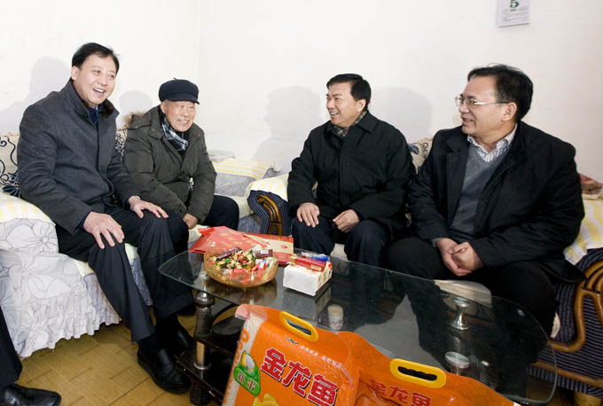 在杨庄矿省劳动模范、退休职工童启云的家中,黄晓武亲切地与他握手,为他送上了新春礼包,说:“春节即将来到,给你拜年了,家里都好吧?孩子们咋样?感谢你过去为淮北市的发展做出了杰出贡献,希望你健康长寿,过一个幸福的晚年”。