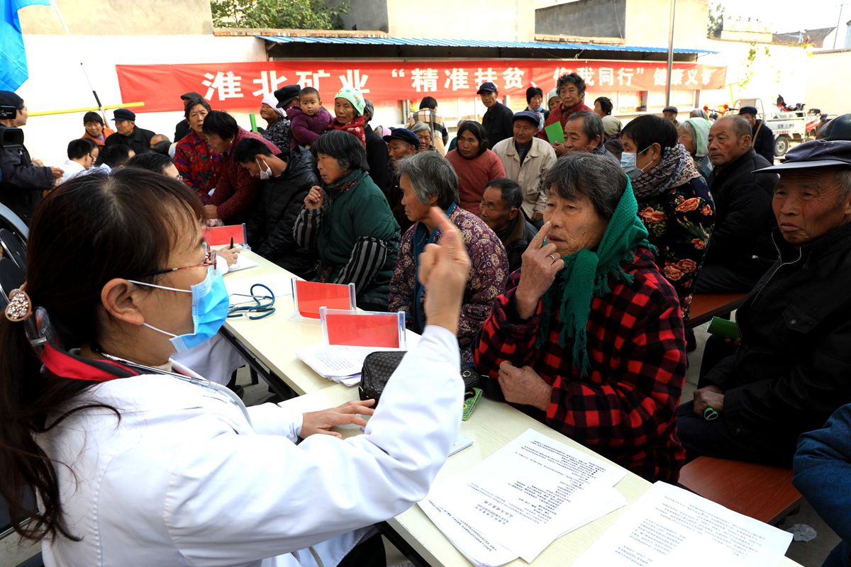 扶贫工作队对俺们梁寨村的帮扶,现在村里新修了马路,还建了扶贫驿站和粉丝厂,村民的生活是一天比一天好了。今天又来给我们免费看病,真的很感谢。”握住矿区工会志愿者的手,村民徐大爷感动地说道。