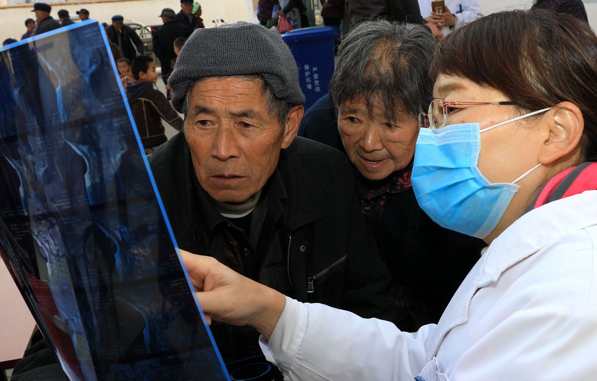随后,医护人员们以村委会小广场为主阵地,并开辟了三个临时诊疗房间,分别摆上了血压测量仪、血糖测试仪、心电图检测仪、彩超机等便携式医疗设备,热情地为村民检查病情、解疑释惑。