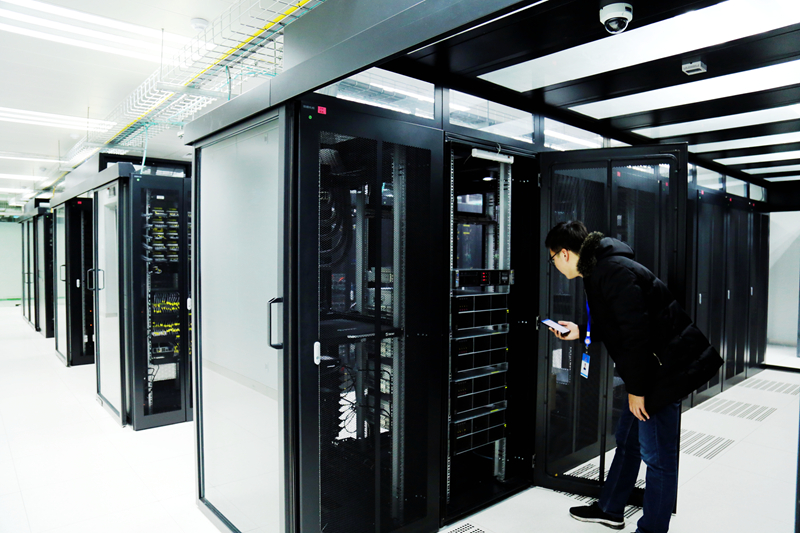 运维人员在用手机扫码对云计算中心设备进行巡检