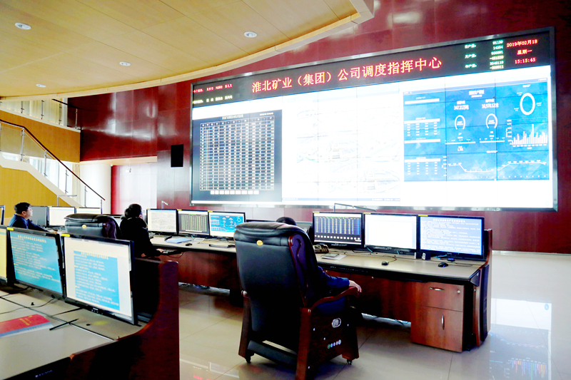 安全生产调度中心,在硕大的可视化显示屏幕前,十几台电脑精准的监测着全集团公司的煤矿、选煤厂、电厂、“三化”企业核心产品的生产动态、现场环境、煤矿人员定位和工作人数、设备运行状况、产品质量等,对所有生产矿厂实现了全要素、全流程监控。
