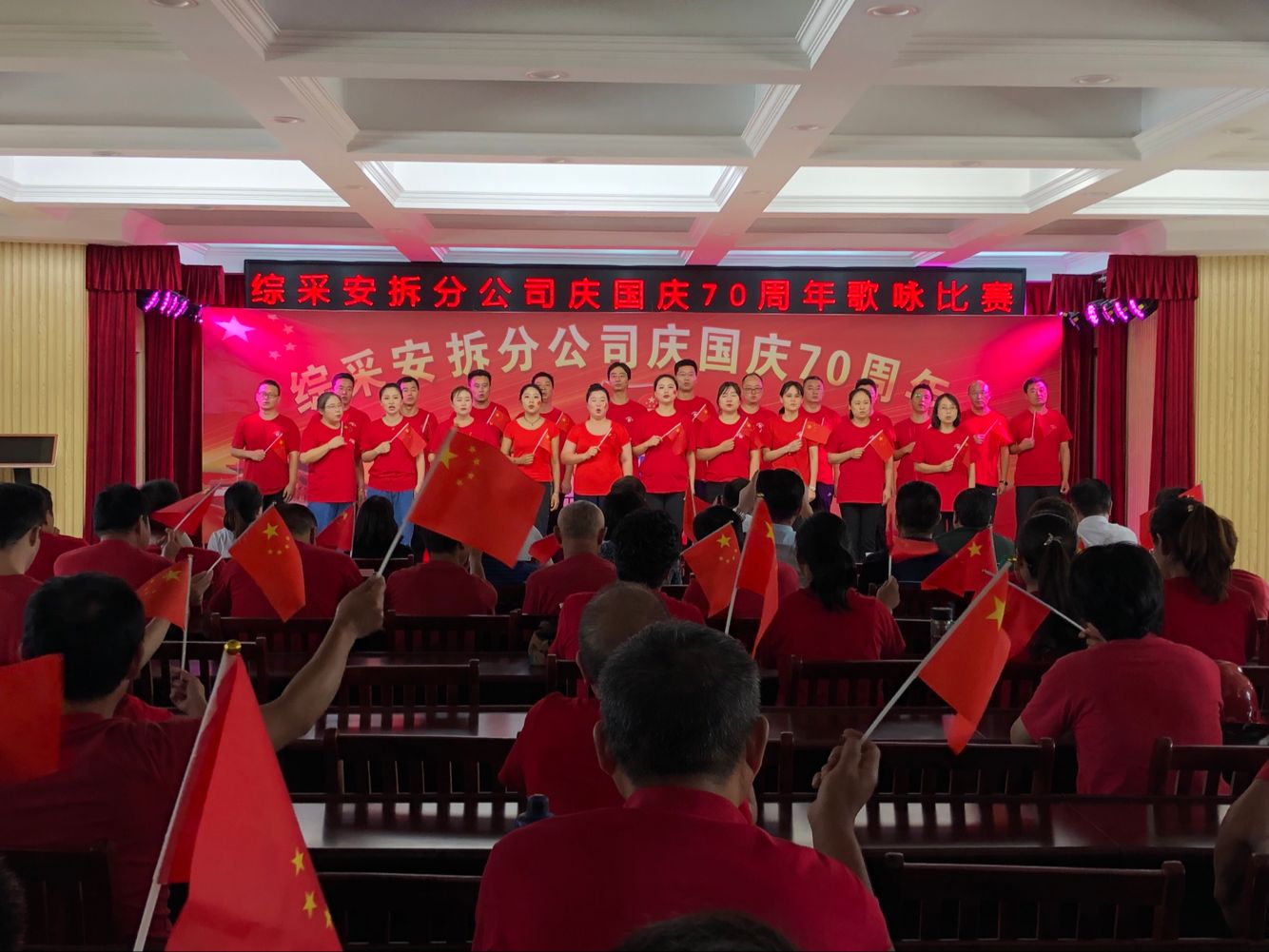 9æœ�27日,综采安拆分公å¸åœ¨å››æ¥¼å¤§ä¼šè®®å®¤ä¸¾è¡Œã€Šæˆ‘和我的祖国》——庆国庆70周年æŒå’比赛,èŒå·¥ç²¾å¿ƒç¼–排节目,演唱了《我和我的祖国》《大ä¸å›½ã€‹ã€Šæˆ‘çš„ä¸å›½å¿ƒã€‹ç‰ç»å…¸çº¢æŒï¼Œç©¿æ’集体åˆå”±ï¼ŒæŒå”±ç¥–国ç¹è£æ˜Œç››ï¼Œç¥ç¦ç¥–国的明天更美好,å‘祖国æ¯äº�70周年åŽè¯žçŒ®ç¤¼ï¼Œæ¿€å‘æ£èƒ½é‡ï¼Œå¹¶ä»¥é¥±æ»¡çš„å·¥ä½œçƒæƒ…,投身到伟大祖国建设洪æµä¹‹ä¸ã€‚ï¼ˆæ±ªæ ¹å¹� 朱新æ•)