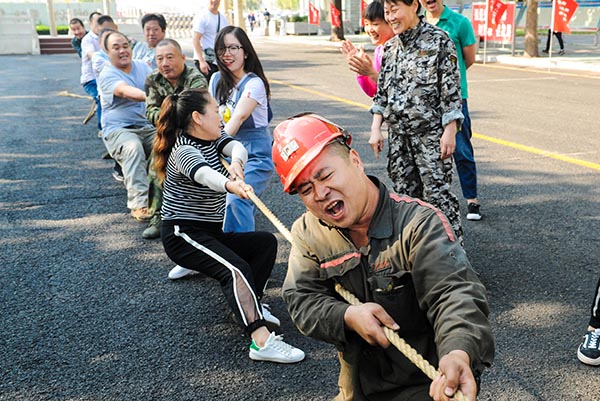 è¥é€ 欢ä¹ç¥¥å’Œçš„èŠ‚æ—¥æ°›å›´ï¼ŒææŒ¯å¹¿å¤§å¹²éƒ¨èŒå·¥å£«æ°”ã€�9æœ�27日上åˆï¼Œæœ±ä»™åº„矿在工业广场举办庆国庆系列文体活动。活动项目有集体拔河ã€å¥—圈ã€�å››äººé½æ¥èµ°ç‰ï¼Œå…¨çŸ¿å¹²éƒ¨èŒå·¥è¸Šè·ƒå‚与,展现出了积æžè¿›å–ã€å‹‡äºŽäº‰å…ˆçš„精神风貌,现场欢声笑è¯ã€æ°”氛和è°ã€‚ï¼ˆå¼ ä¸‡å¦ï¼‰