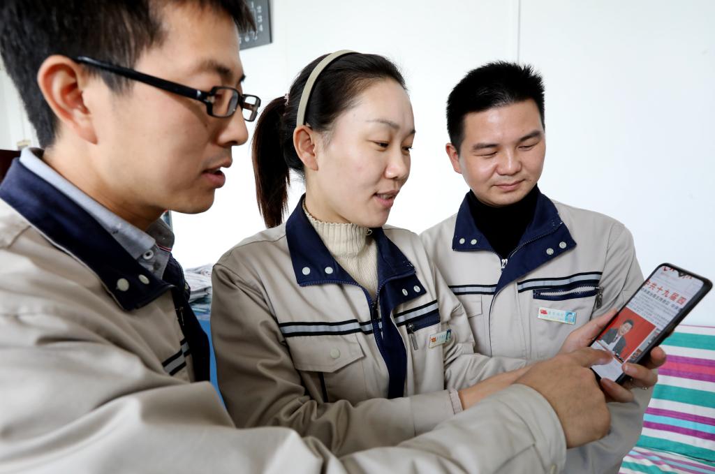 11�1日,朱仙庄矿几名党员正在运用“学习强国”平台认真学习党的十九届四中全会精神。党的十九届四中全会胜利闭幕后,该矿利用广播、电视、网络、学习强国平台等多种形式组织党员干部深入学习全会精神。该矿党员干部纷纷表示,在习近平新时代中国特色社会主义思想的指引下,全面贯彻落实全会精神,立足本职岗位,撸起袖子加油干,奋力推动企业高质量发展。(朱安 摄)