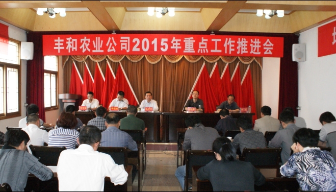 15日下午,丰和农业公司在公司四楼会议室召开午2015年重点工作推进会,重点安排部署夏收夏种工作。公司领导、机关各部室负责人和基层各单位党政负责人及副场长参加了会议。