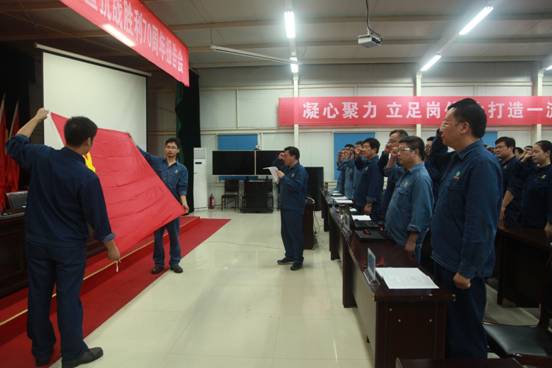 “我志愿加入中国共产党,拥护党的纲领,遵守党的章程,履行党员义务,执行党的决定,严守党的纪律,保守党的秘密……”华塑公司第五会议室,100多位党员干部举起右拳,面对鲜红的党旗,重温入党时的铮铮誓言。