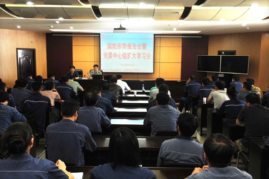 为纪念世界反法西斯战争和中国抗日战争胜利70周年,8月6日,临涣选煤厂专门邀请淮北军分区政治部主任陈瑞春大校来厂,以党委中心组学习扩大会议的形式,举办了国防形势教育报告会。这是也该厂开展纪念建军88周年系列活动的一项重要内容。厂党委中心组成员、机关各部室、基层各单位有关负责人及部分基干民兵参加了学习。