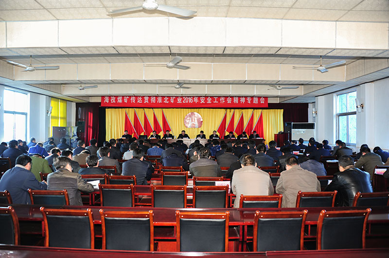 12月26下午,海孜矿在西四楼会议室召开传达贯彻淮北矿业2016年安全工作会精神专题会,动员全矿干部职工以贯彻落实会议精神为统领,认清形势,主动作为,抓紧抓实矿井年末岁初安全生产各项工作,收今年好尾,开好明年局。副总以上矿领导,机关各部室负责人,以及基层各单位班队长以上管理人员参加了会议。