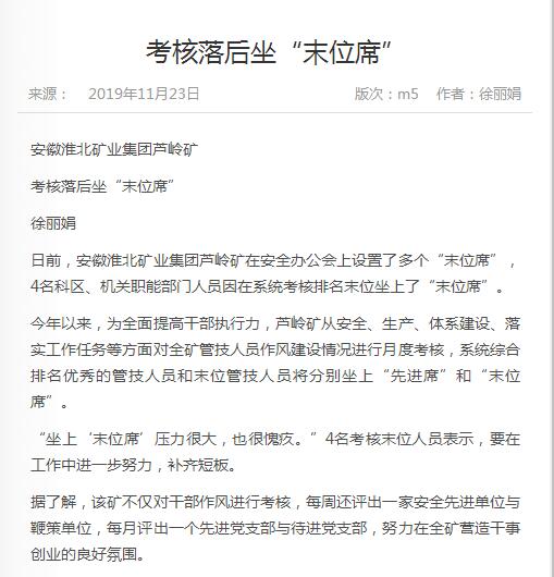 《中国煤炭报》:太子娱乐城 芦岭矿考核落后坐“末位席”