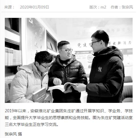 《中国煤炭报》:太子娱乐城 朱庄矿提升大学毕业生思想素质和业务技能