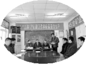 | 唐延杰(右一)每天都会在编前会上向值班人员反复“唠叨”,叮嘱职工遵守规章,认真作业。 |