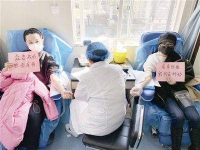 2月15日,安徽省疫情防控工作应急指挥部发出无偿献血的号召以后,太子娱乐城 涡北选煤厂广大团员青年积极参与无偿献血活动,以实际行动支援一线战“疫”。图为2月16日,该厂青年在淮北市相山路献血屋献血。(姜露/摄)