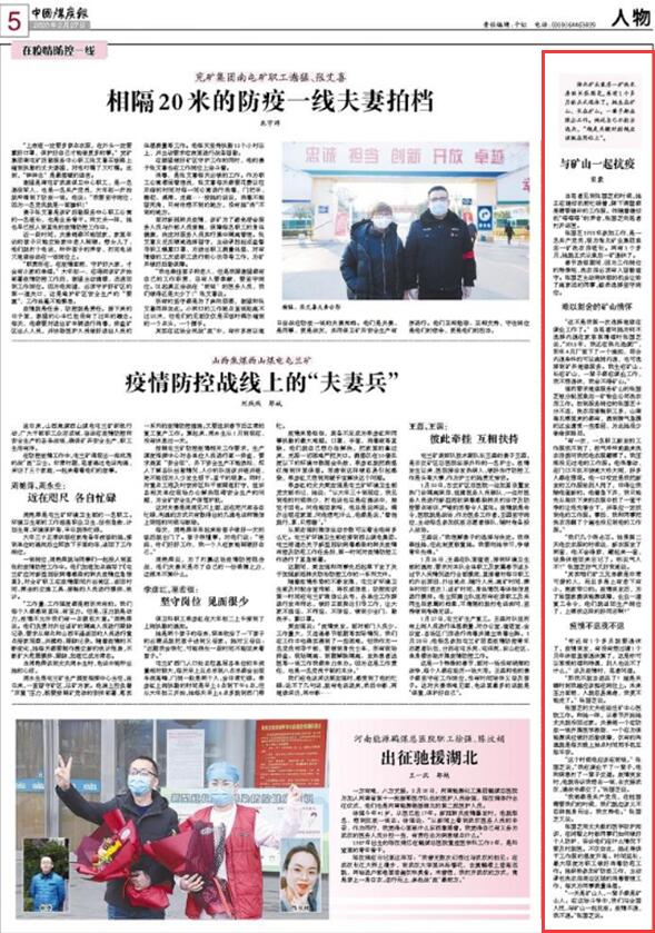 “一天是矿山人,一辈子都是矿山人。在这场斗争中,我们与全国人民、与矿山一起抗疫。疫情不退,我不退。”张国芝说。(梁蒙)