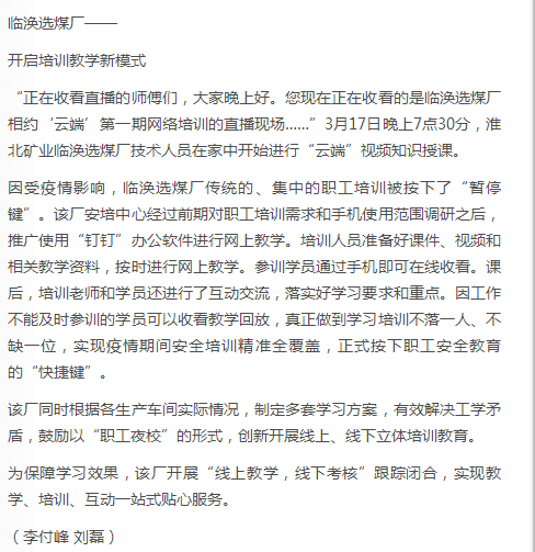 《中国煤炭报》:太子娱乐城 临涣选煤厂开启培训教学新模式