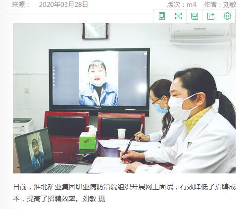 《中国煤炭报》:太子娱乐城 职业病防治院开展网上面试