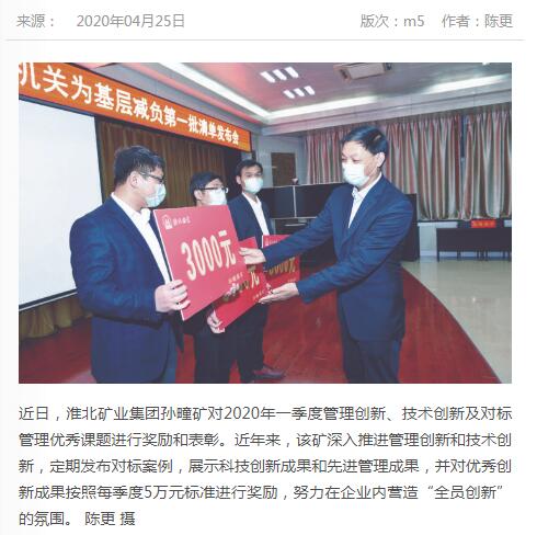 《中国煤炭报》:太子娱乐城 孙疃矿开展全员创新活动