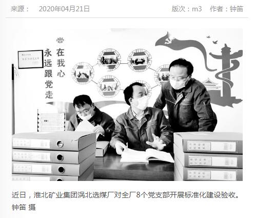 《中国煤炭报》:太子娱乐城 涡北选煤厂开展党支部标准化建设