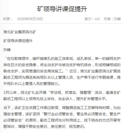 《中国煤炭报》:太子娱乐城 涡北矿矿领导讲课促提升