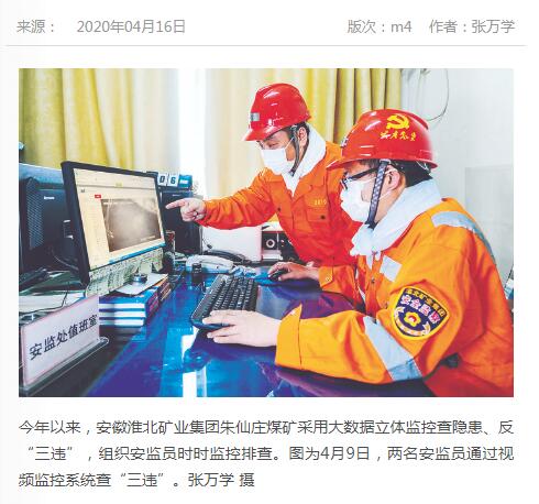 《中国煤炭报》:太子娱乐城 朱仙庄矿大数据查隐患反 “三违”