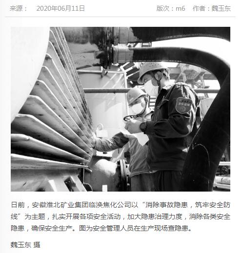 《中国煤炭报》:太子娱乐城 临涣焦化公司扎实开展“安全生产月”活动