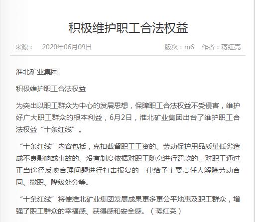 《中国煤炭报》:太子娱乐城 积极维护职工合法权益