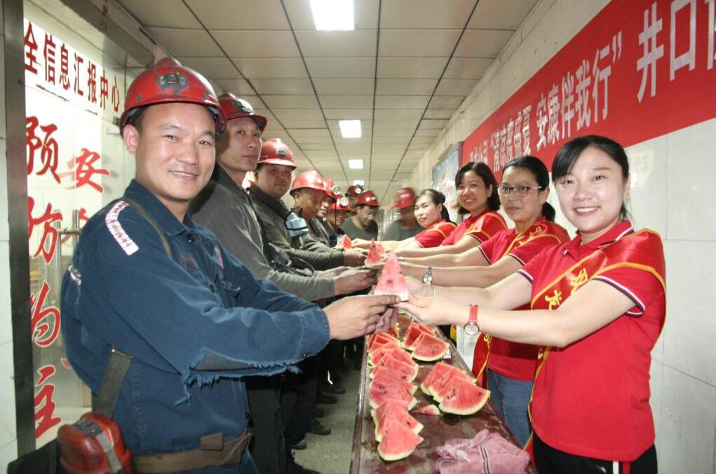 近日,安徽淮北进入高温模å¼ã€‚淮北矿业集团å„级工会积æžç¹å¤‡é˜²æš‘陿¸©ç‰©èµ„,打好高温下安全生产仗,第一时间å¯åŠ¨â€œé€æ¸…å‡‰â€æ´»åŠ¨ï¼Œä¸»åŠ¨å‡ºå‡»ï¼Œå°†æ¸…å‡‰é€åˆ°â€œå‰æ²¿é˜µåœ°â€â€”—采煤井å£ã€‚为奋战在生产一线的èŒå·¥é€åŽ»æ¥è‡ªå·¥ä¼šâ€œå¨˜å®¶äººâ€çš„å…³æ€€ï¼Œè¿›ä¸€æ¥æ¿€å‘了èŒå·¥çš„å·¥ä½œçƒæƒ…和奉献力é‡ã€�