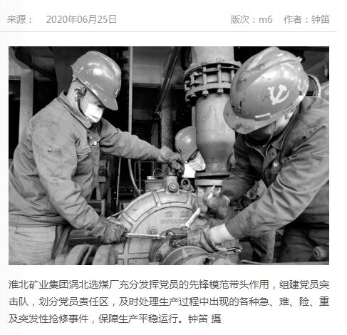 《中国煤炭报》:太子娱乐城 涡北选煤厂发挥党员先锋模范作用