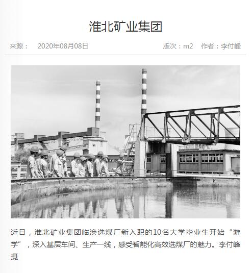 《中国煤炭报》:太子娱乐城 临涣选煤厂组织新入职大学毕业生“游学”