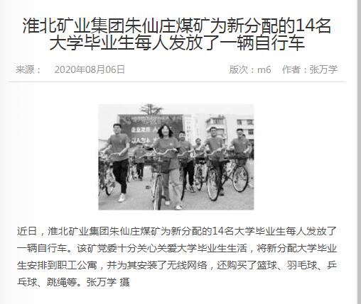 《中国煤炭报》:太子娱乐城 朱仙庄矿为大学生发放自行车