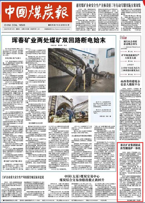 新型掘锚护一体机在朱仙庄矿88运输大巷试用取得成功。