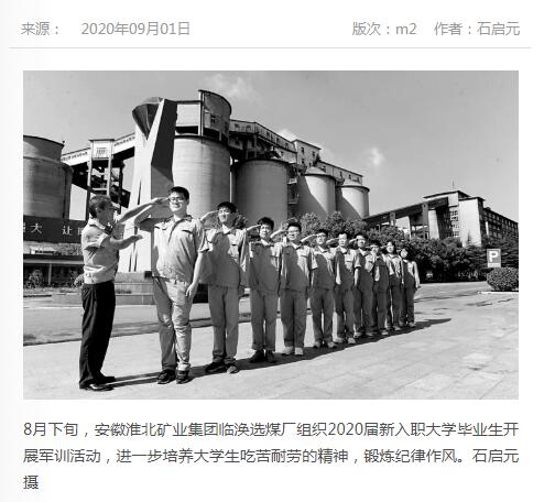 《中国煤炭报》:太子娱乐城 临涣选煤厂组织新入职大学毕业生开展军训