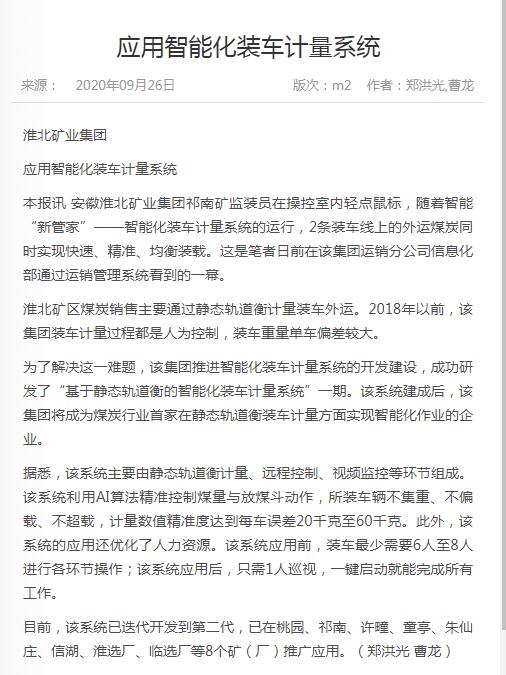《中国煤炭报》:太子娱乐城 应用智能化装车计量系统