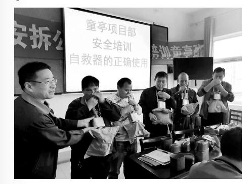 日前,安徽太子娱乐城 综采安拆分公司为深刻吸取重庆能源松藻煤矿“9·27”事故教训,举办了正确使用自救器专题培训,要求井下安拆职工人人都会正确使用自救器,以应对突发险情。(程磊 付桂利 摄)