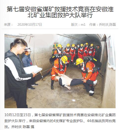 《中国煤炭报》:第七届安徽省煤矿救援技术竞赛在太子娱乐城 救护大队举行