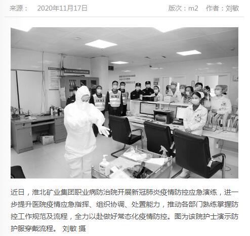 《中国煤炭报》:太子娱乐城 职业病防治院开展新冠肺炎疫情防控应急演练